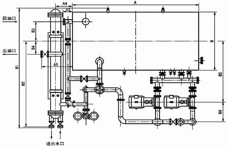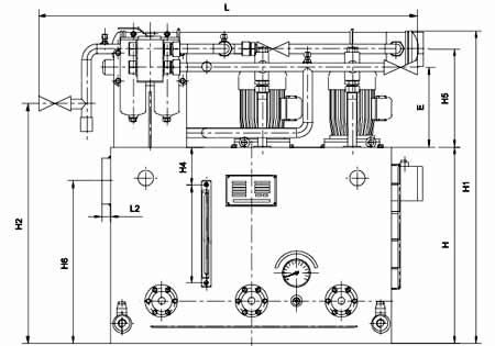 ≥250L/min稀油站,采用蒸汽加熱油箱中的潤滑油,儀表盤尚多一檢測冷卻器進出水管壓差的儀表,其主要部件均另外裝于基礎上;而≤125L/min稀油站的全部部件都裝在油箱上,為整體式結構。